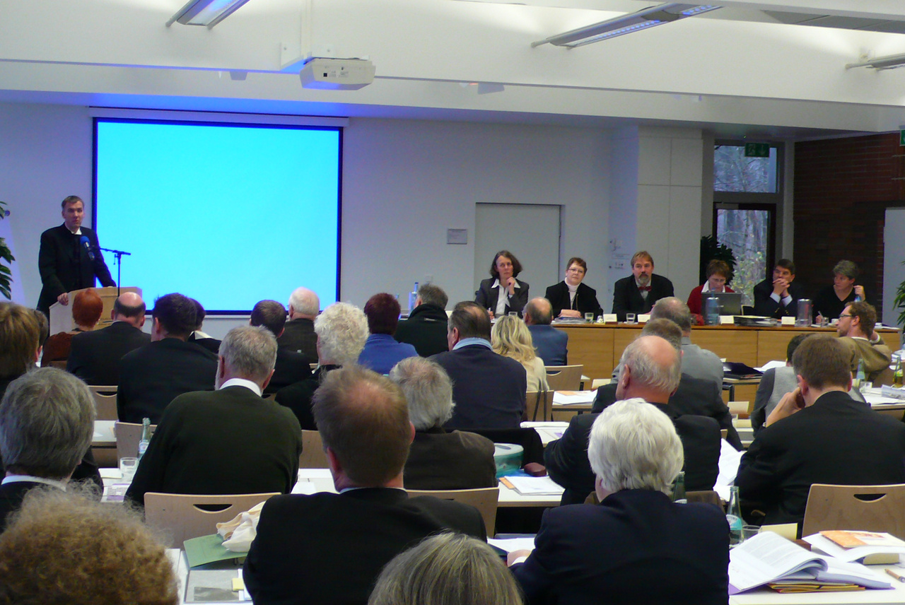 In ungewohntem Ambiente eröffnete die Präsidentin Sabine Blütchen am Donnerstag die 2. Tagung der 47. Synode in Rastede. Weil unter anderem eine Entscheidung über die Zukunft der Heimvolkshochschule Rastede auf der Tagesordnung stand, war die Synode von ihrem langjährigen Tagungsort auf das Akademiehotel Rastede ausgewichen. Wir werden uns mit den ganz normalen Themen einer Herbstsynode befassen", sagte die Präsidentin, in ihrer Einführung aber auch mit dem besonderen thematischen Schwerpunkt Ehrenamt und der Wahl einer neuen Oberkirchenrätin." Nicht zuletzt setzte sich die Synode konstruktiv mit dem Anlageverlust der Evangelisch-Lutherischen Kirche in Oldenburg und den damit zusammenhängenden Kommunikationsproblemen auseinander. Blütchen begrüßte besonders Oberkirchenrätin Dr. Albrecht, die zum letzten Mal an einer Tagung der Synode teilnahm, und Bischof Jan Janssen zu seiner ersten Synodaltagung.