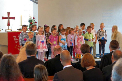 Unter dem Motto Alle unter einem Dach beteiligten sich am Festgottesdienst auch die Kleinsten in der Gemeinde, die Kinder aus der benachbarten Evangelischen Kindertagesstätte Arche Noah. Sie sangen zwei Lieder, eines davon mit der ganzen zahlreich versammelten Gottesdienstgemeinde.