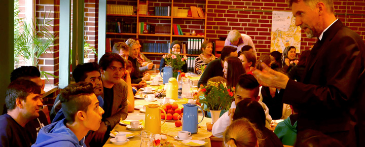 Der oldenburgische Bischof Jan Janssen hat an die Menschen in Deutschland appelliert, den Kontakt mit den Flüchtlingen und Migranten zu suchen. „Begegnung ist die beste Medizin gegen die Angst“, sagte der evangelische Theologe am Donnerstag beim Besuch eines Integrationscafés in Hohenkirchen bei Jever. Seit rund einem Jahr kommen jeden Donnerstag im Gemeindehaus der Kirchengemeinde rund 30 Migranten und 15 ehrenamtliche Helfer zusammen, um sich kennenzulernen und um Unterstützung zu organisieren.