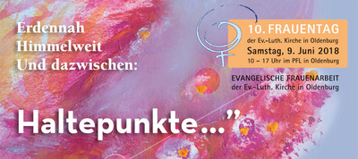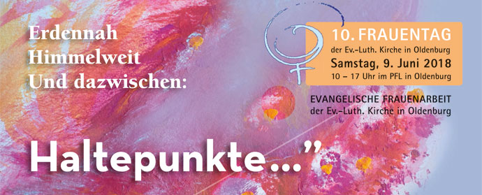 Das zehnjährige Jubiläum des Frauentags der Ev.-Luth. Kirche in Oldenburg laut Veranstalterinnen Anlass dazu geben, einmal innezuhalten. Die Themen bewegten sich in den vergangenen Jahren stets zwischen gesellschaftlichen und spirituellen Fragestellungen, zwischen Irdischem und Himmlischem. Daher nähern sich die Teilnehmerinnen dieses Mal von ganz unterschiedlicher Seite dem Thema „Erdennah – Himmelweit … Und dazwischen: Haltepunkte …“ an. Was hält und trägt uns? Was erdet uns? Was gibt Orientierung? Was, wenn das Leben einen zum Anhalten zwingt? Wo gilt es „Stopp“ zu sagen: „Bis hierher und nicht weiter!“? Woraus schöpfen wir Kraft? Darum soll es gehen.