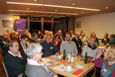 Die Delegierten und Gäste wurden zur Sitzung im Gemeindehaus vom Vorsitzenden der Kreissynode Dr. Detlev Lauhöfer begrüßt. Die politischen Gemeinden waren durch die stellvertretende Bürgermeisterin von Stuhr, Sigrid Rother, und durch den Bürgermeister der Stadt Delmenhorst, Pfr. i.R. Dr. Enno Konukiewitz, vertreten. Frau Rother betonte die gute Gemeinschaft der Kommune mit den Religionsgemeinschaften, die durch regelmäßige Sitzungen einer Arbeitsgemeinschaft Gestalt gewönnen. Dr. Konukiewitz schloss sich dieser Ansicht an und verwies auf die Zwei-Reiche-Lehre Luthers und die Betrachtungen Karl Barths nach dem Zweiten Weltkrieg zum Verhältnis von Christen- und Bürgergemeinde. Indem er auf das intensive gemeinsame Vorgehen von Stadt und Kirchengemeinden hinsichtlich der Nachbarschaftsbüros, der Familienbildungsstätte und der Grafengruft verwies, sah er in dem gemeinsamen Vorgehen eine Stärkung der demokratischen Stadtgesellschaft. Hier werde so manch Segensreiches auf den Weg gebracht, was in der Öffentlichkeit großen Anklang finde. Dr. Konukiewitz unterstrich im Kontext des Gedenktages zur Pogromnacht die guten Beziehungen zur jüdischen Gemeinde Delmenhorst: „Wir sind sehr dankbar, dass wir sie haben!“. Dr. Detlev Lauhöfer dankte im Namen der Synode dem langjährigen Vorsitzenden der MAV, Hartwig Kuschmierz, für seine konstruktive Begleitung in vielen Jahren. Er trete nun seinen wohlverdienten Ruhestand an und war das letzte Mal dabei. Ebenso gilt das für Pfarrerin Christiane Geerken-Thomas, die zur Kreispfarrerin des Kirchenkreises Wesermarsch gewählt wurde und somit auch ihre Kirchenkreisbeauftragung als Kreisjugendpfarrerin abgibt.
