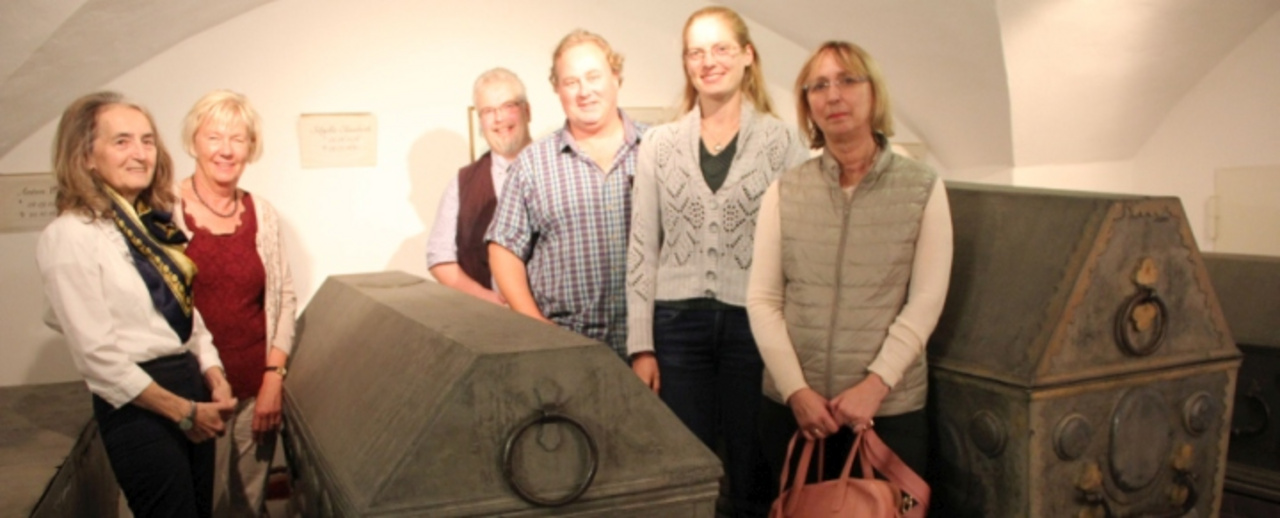 Nicht nur diese Geschichte könnte in Zukunft in der neugestalteten Gruft erzählt werden. Auch die Biografien der vier Mitglieder der Grafenfamilie sind recht gut dokumentiert, wie Herta Hoffmann darstellt. In den Leichenpredigten, von denen 37.000 in der Herzog-August-Bibliothek in Wolfenbüttel aufbewahrt werden, findet sich auch Persönliches zu den Delmenhorster Herrschern.„Wir hoffen, dass sich die Delmenhorster ihrer Geschichte verbunden fühlen und für die Grafengruft spenden“, betont Stolberg. Und Johannes Mitternacht ergänzt: „Das hier ist lebendige Geschichte. Im Gottesdienst wird zum Beispiel immer noch ein Kelch benutzt, aus dem auch schon Garf Christian der IX beim Abendmahl getrunken hat. Um möglichst viele Spenden für die Grafengruft zu spenden, werden Stolberg und Mitternacht mehr Führungen durch die Gruft anbieten.