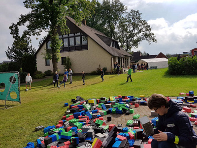Mit großen Spielsteinen konnten die Kinder Burgen bauen und bei Spielen wie Sackhüpfen, Eierlaufen und Kirschkernspucken ihre Fähigkeiten unter Beweis stellen. Ein Team von 20 Ehrenamtlichen hatte sich gefunden, den Kinderkirchentag vorbereitet und durchgeführt. „Das war eine große Herausforderung, weil die Helfenden in dieser Zusammensetzung das erste Mal zusammen gearbeitet haben und das Konzept neu war. Aber es hat prima geklappt!“ freut sich die Pfarrerin. Viele Steinfelder Unternehmen haben kleine Sachspenden gegeben, die die Kinder mit nach Hause nehmen durften. Die Resonanz der Kinder und der Ehrenamtlichen war positiv, sodass dies nicht der letzte Kinderkirchentag war.