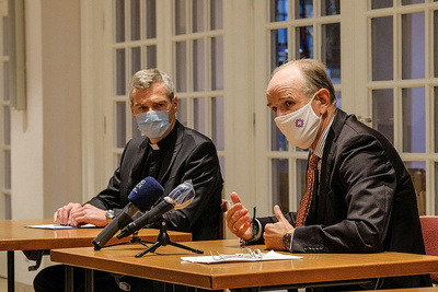 In einer gemeinsamen Pressekonferenz im Leibnizsaal der Neustädter Hof- und Stadtkirche in Hannover stellten Landesbischof Ralf Meister, zugleich Ratsvorsitzender Konföderation der evangelischen Kirchen in Niedersachsen, und Dr. Heiner Wilmer, Bischof des Bistums Hildesheim, die Erklärung vor. „Die Corona-Pandemie ist eine gesundheitliche, soziale und ökonomische Katastrophe ungeahnten Ausmaßes“, sagte Bischof Wilmer zu Beginn. Die Stärke der Kirchen liege nun in der tatkräftigen Unterstützung von Menschen, die Hilfe benötigten, sowie der seelsorgerlichen Begleitung.