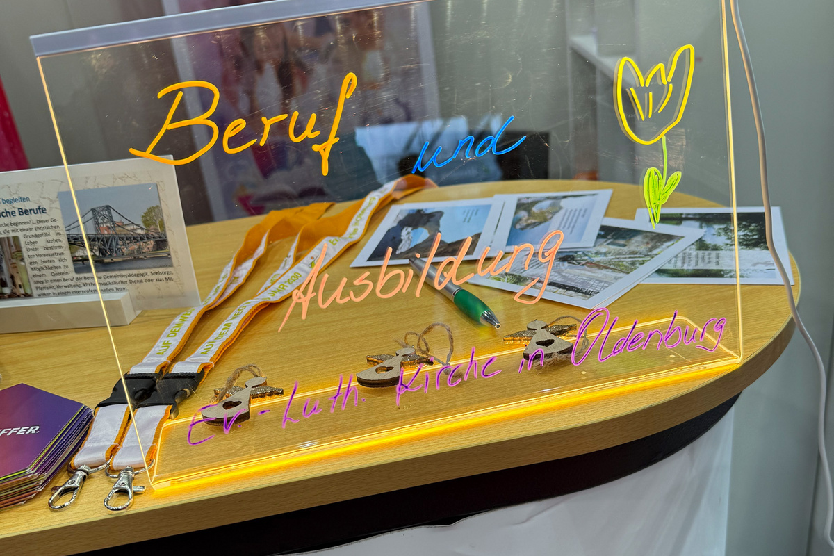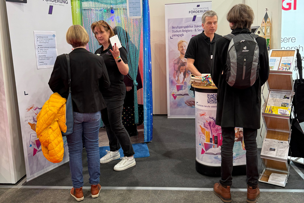 Zum wiederholten Male hat sich die Evangelisch-Lutherische Kirche in Oldenburg auf der Jobmesse in den Weser-Ems-Hallen mit einem eigenen Stand präsentiert. Zahlreiche Besucherinnen und Besucher haben die inzwischen 20. Auflage der Messe genutzt, um sich über berufliche Perspektiven zu informieren.