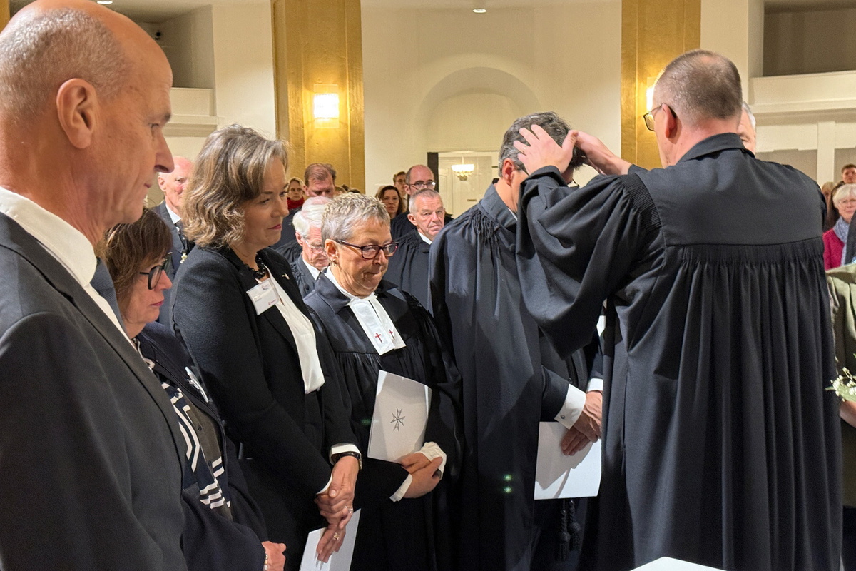 Thomas Adomeit, Bischof der Ev.-Luth. Kirche in Oldenburg, nahm in seiner Predigt Bezug auf die acht Seligpreisungen der Bergpredigt, die von den acht Spitzen des Johanniterkreuzes symbolisiert werden. „Bevor auch nur ein einziges ‚Selig sind‘ gesprochen wird, steht dieser Satz: Jesus sieht die Menschen.“ Das, so Bischof Adomeit, sei zweideutig zu verstehen. Jesus sehe nicht nur die Menschen, sondern sehe auch in sie hinein, in zerbrochene Seelen, in Menschen, die trauerten, denen niemand gesagt habe, dass sie wichtig sind. Selig heiße nicht, dass alle wieder froh und glücklich sind, sondern, dass Gott sie sehe trotz Leid und Gewalt. „Gott spricht euch Würde und Zukunft zu, mitten in eine Welt, in der Gewalt und Unrecht sehr real sind.“ Gott vergesse niemanden, erst recht nicht jene, die schwach sind und in Not. In das Frauenhaus kämen Frauen aus Situationen, in denen Vertrauen zerstört, Nähe missbraucht und das eigenes Zuhause zur Gefahr geworden sei. „Ihr, die verletzt wurde, seid nicht die, die sich schämen müssen. Nein, nicht ihr habt versagt, sondern andere haben euch Gewalt angetan. Gott stellt sich euch an die Seite und will euch nicht trösten mit Worten, sondern mit Schutz und Menschen, die an euch glauben.“ Das Hanna-Haus werde ein Ort des Trostes sein und an dem nach und nach Vertrauen wachsen und an die Zukunft gedacht werden kann.