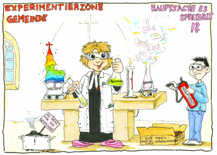 Experimente – das ist die mehr oder minder geheime Überschrift über diesen Newsletter. Julia Klein, Pastorin und Gemeindeberaterin, erzählt von einem Experiment aus ihrer Vergangenheit. Ilse-Dore Humburger, Leiterin der Arbeitsstelle, stellt sich vor. Die Innovationspastorinnen Jennifer Battram-Arenhövel, Meike Melchinger und Nele Schomakers erzählen vom Projekt GO. Ein Methodenhäppchen wird präsentiert, das zum Experimentieren einlädt. Ein wahres Feuerwerk von Hinweisen wartet darauf, dass es in Augenschein genommen wird. Zuletzt dürfen wir uns auf Ritschies Reste und die Gedanken aus dem off … freuen.