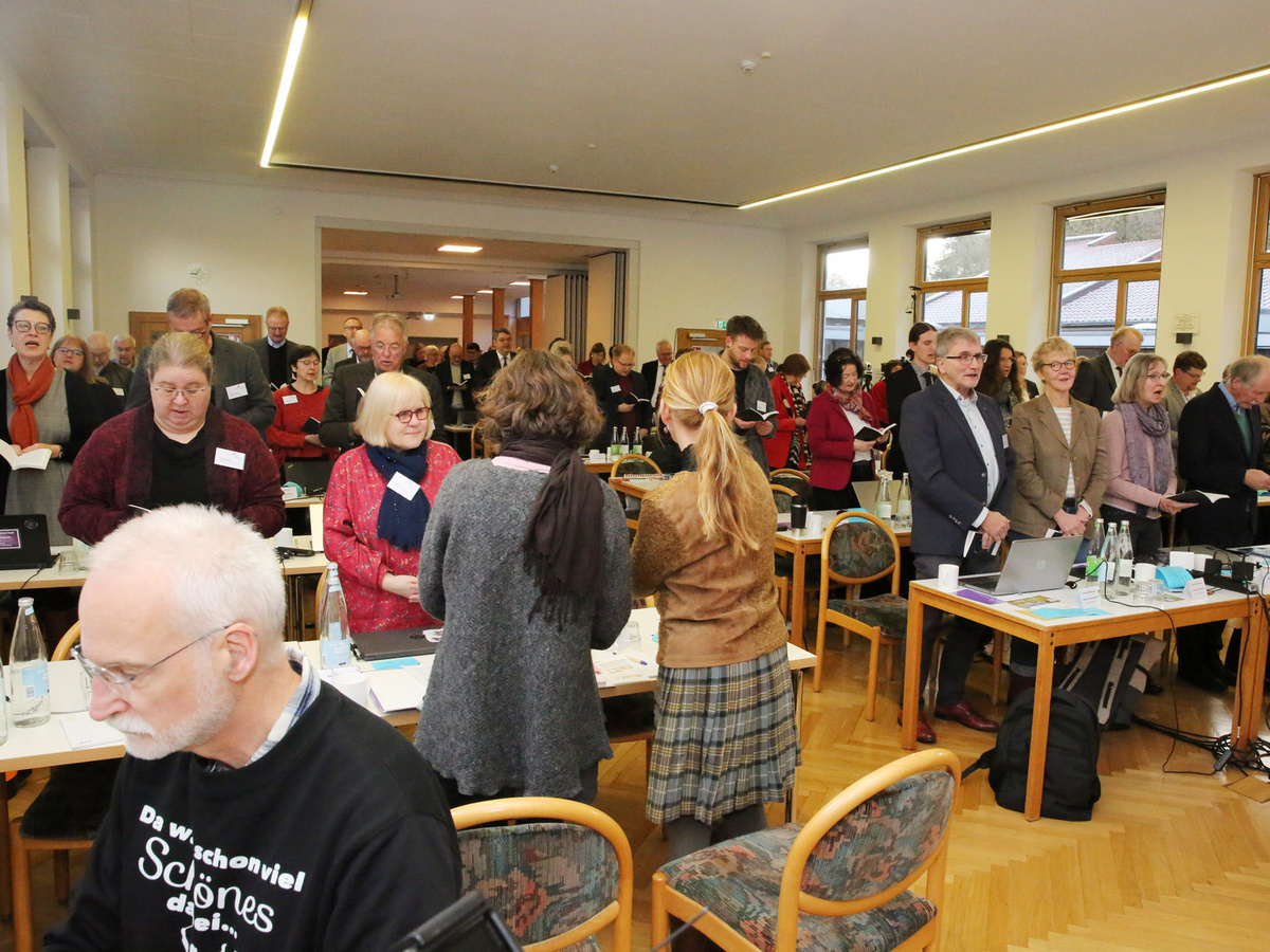 Die EKD-Synode habe den Entwurf zur Verringerung der Zahl der EKD-Synodalen ab der neuen Legislaturperiode 2027 (um ca. 25 %, bemessen an den Mitgliederzahlen der Landeskirchen) intensiv diskutiert. Brockmann berichtete auch vom neuen Evangelischen Gesangbuch, das in die Erprobungsphase gehe. Gemeinden und Interessierte können online über den Verlag am Birnbach einen Zugang zum digitalen Erprobungsbestand bekommen.