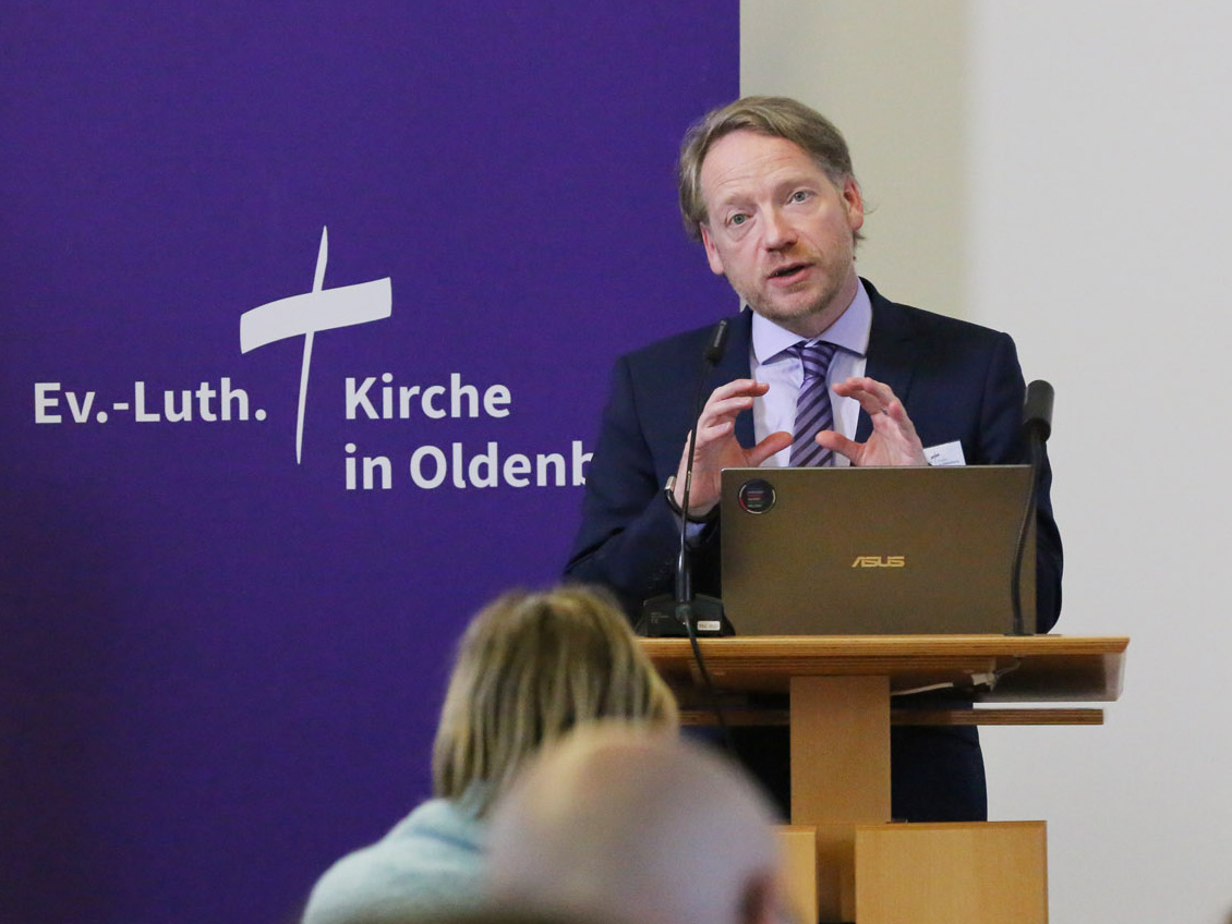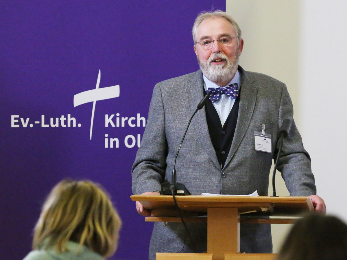 Pfarrer i.R. Kai Wessels stellte den aktuellen Stand des Projekts "Zukunftsfähigkeit der Ev.-Luth. Kirche in Oldenburg” vor. Wessels ist Leiter des neuen Projektteams zur Umsetzung, das dem Oberkirchenrat Entscheidungen zum Prioritätenprozess vorbereitet und die Planung und Durchführung begleitet. Projekts Das Projekt "Zukunftsfähigkeit der Ev.-Luth. Kirche in Oldenburg” ist die Fortsetzung des Prioritätenprozesses der oldenburgischen Kirche, für den ein Sparkonzept erarbeitet werden soll.