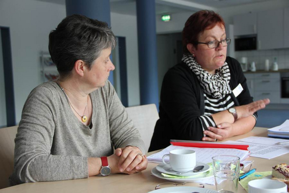 In der Berufsfachschule Altenpflege "Ev.-Luth. Stephanusstift" informierten Schulleiterin Jutta Lippok (li.) und Regina Logemann (re.) von der Diakonie-Sozialstation Delmenhorst die Synodalen über die Herausforderung von kultur- und religionssensibler Pflege. Foto: Kerstin Kempermann