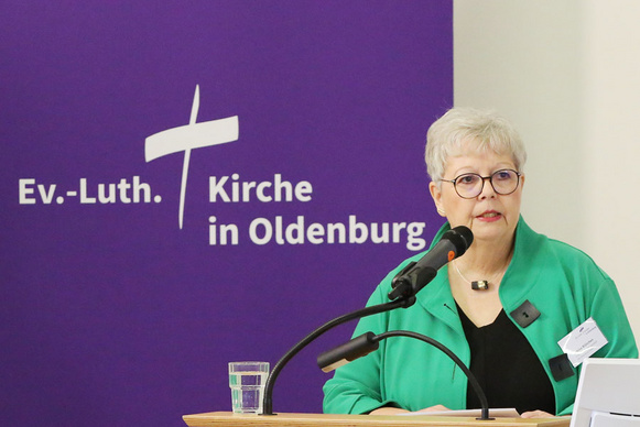 Synodenpräsidentin Sabine Blütchen verpflichtete als neue Synodale: Pfarrerin Nicole Ochs-Schultz (Kirchenkreis Oldenburger Münsterland) und Frauke Uhlhorn (Kirchenkreis Wesermarsch).