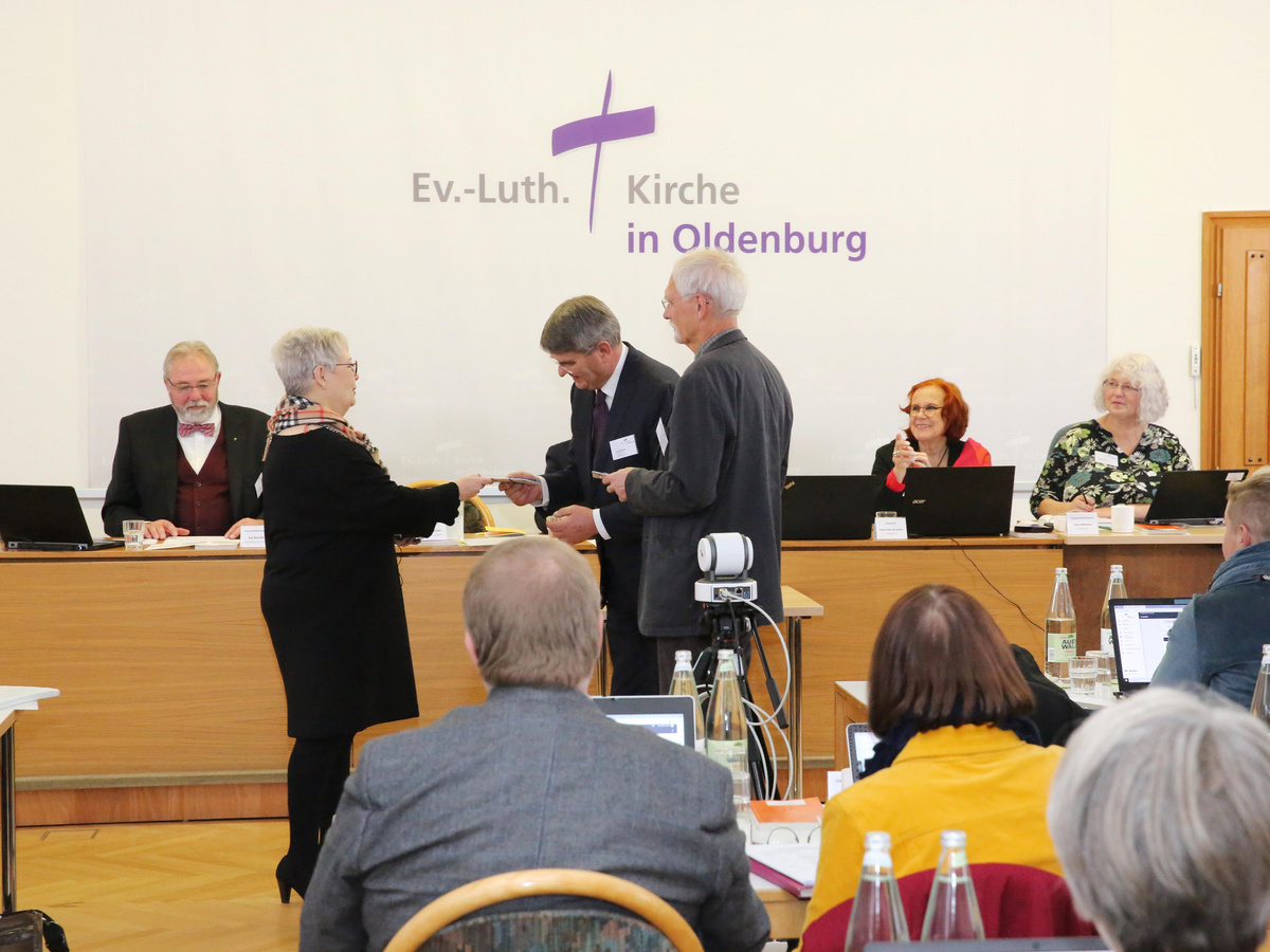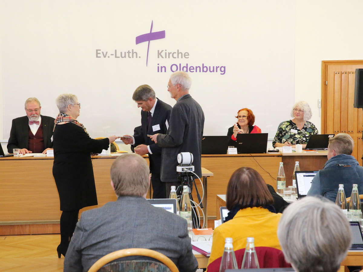 Im Blick auf die Gemeindekirchenratswahl im Frühjahr kommenden Jahres zeigte sich der oldenburgische Bischof sehr dankbar, „dass es gelingt, in den meisten Gemeinden genügend Kandidatinnen und Kandidaten zu finden, obwohl die Zeit so herausfordernd ist und wir kaum beschreiben können, welche Aufgaben anstehen werden.“ Er dankte für den Einsatz vor Ort. Der Oberkirchenrat wolle besonders im Bereich Recht darauf schauen, wo und wie Entscheidungen beschleunigt werden können. Dazu werde er in den Regionen der oldenburgischen Kirche die neuen Gemeindekirchenräte zu Gesprächen einladen, um sich den Fragen und Anregungen der Kirchenältesten zu stellen. "Wir hoffen, dass wir so zum gelingenden Miteinander von Haupt- und Ehrenamt beitragen können."